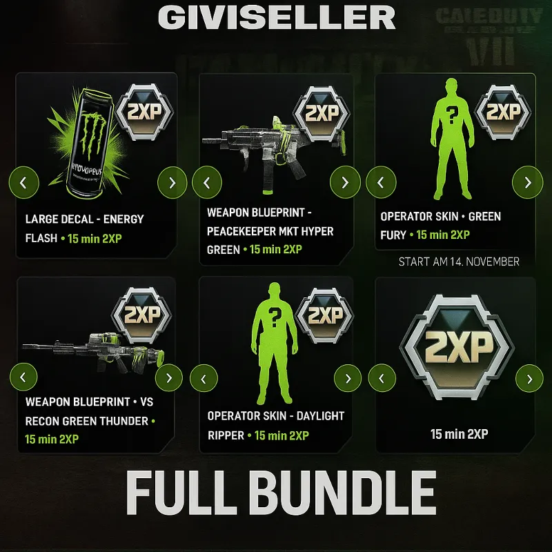 ✨ Сразу после покупки вы получите 5 уникальных цифровых ключей из коллекции Monster Energy × Call of Duty: Black Ops 7 (2025).
