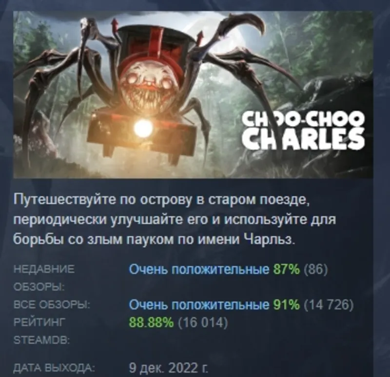 Gift Choo-Choo Charles АВТОДОСТАВКА STEAM РОССИЯ