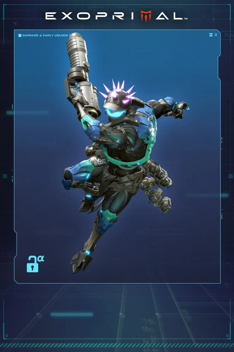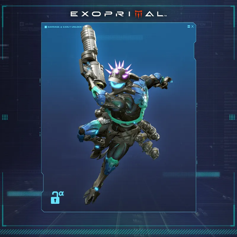 Получите ранний доступ к Barrage α! Оборудуйте свой экзоскелет ракетным ланчером и разрушайте волны динозавров и соперников-Экзобойцов!