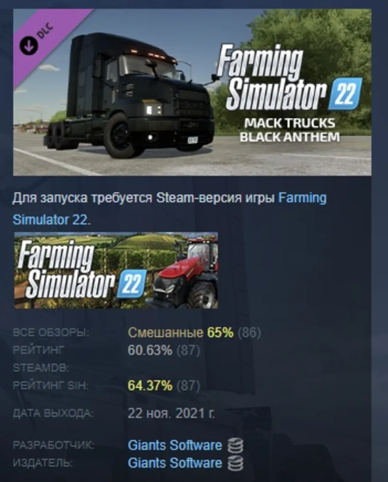 https://store.steampowered.com/app/1767680/Farming_Simulator_22__Mack_Trucks_Black_Anthem/