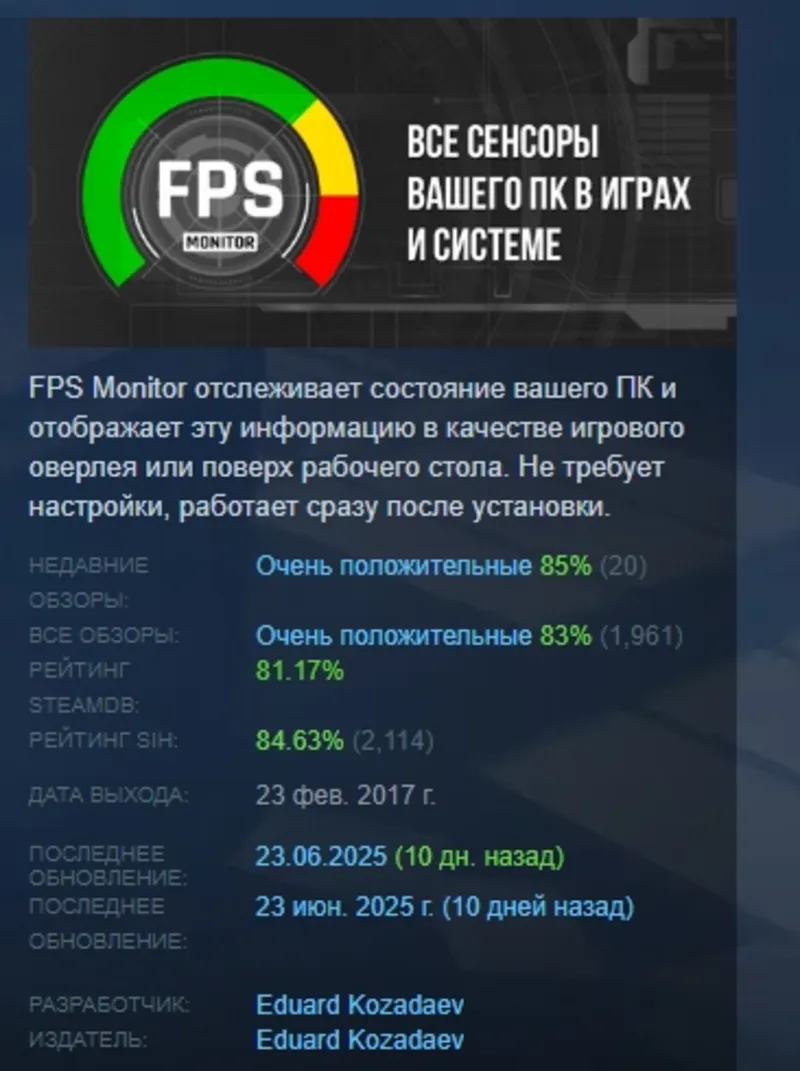 Так же для FPS Monitor – hardware in-game & desktop overlays:
