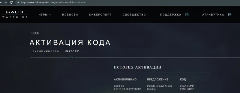 Активация: Только на https://www.halowaypoint.com/redeem