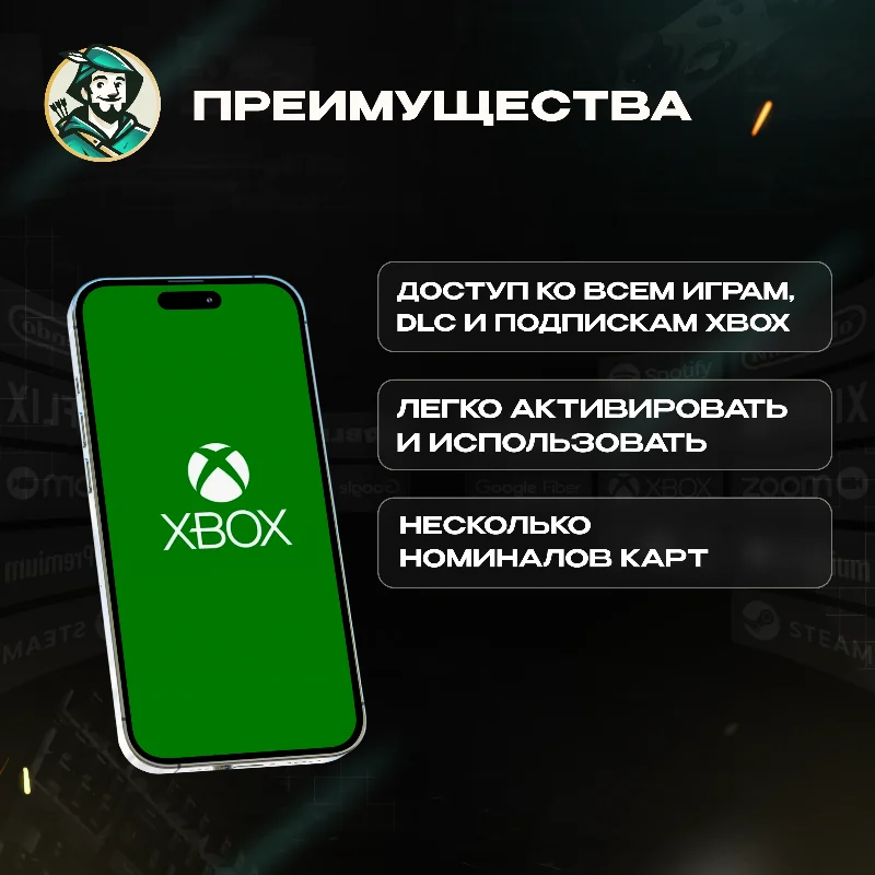 Xbox Gift Card — это предоплаченная карта, которую можно использовать для покупки игр, дополнений, подписок и других цифровых товаров в магазине Xbox. Она позволяет пользователям добавлять средства на свой аккаунт Xbox или Microsoft, которые затем можно использовать для покупки игр и дополнений (как для консоли Xbox, так и для ПК), подписок (например, Xbox Game Pass или Xbox Live Gold) и контента (DLC, скины и другие внутриигровые покупки)
