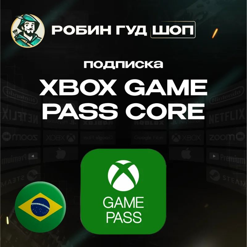 🎮🟢 После оплаты вы получаете уникальный ключ активации Xbox Game Pass CORE на 3-12 месяцев. Эти коды работают для учетной записи с регионом БРАЗИЛИЯ.⚠️ Подписку можно активировать только на аккаунтах, зарегистрированных в БРАЗИЛИИ.