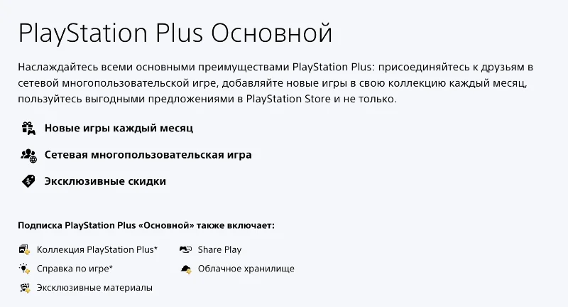 ✔️ Ежемесячные игры; ✔️Онлайн-игра; ✔️ Облачное хранилище; ❌Каталог игр