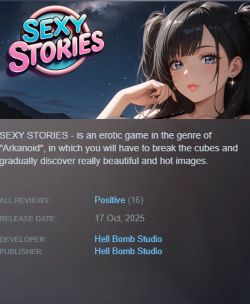 SEXY STORIES — это эротическая игра в жанре «Арканоид», в которой вам предстоит разбивать кубики и постепенно открывать для себя по-настоящему красивые и горячие картинки.