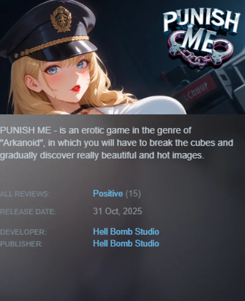 PUNISH ME — это эротическая игра в жанре «Арканоид», в которой вам предстоит разбивать кубики и постепенно открывать для себя действительно красивые и пикантные картинки.