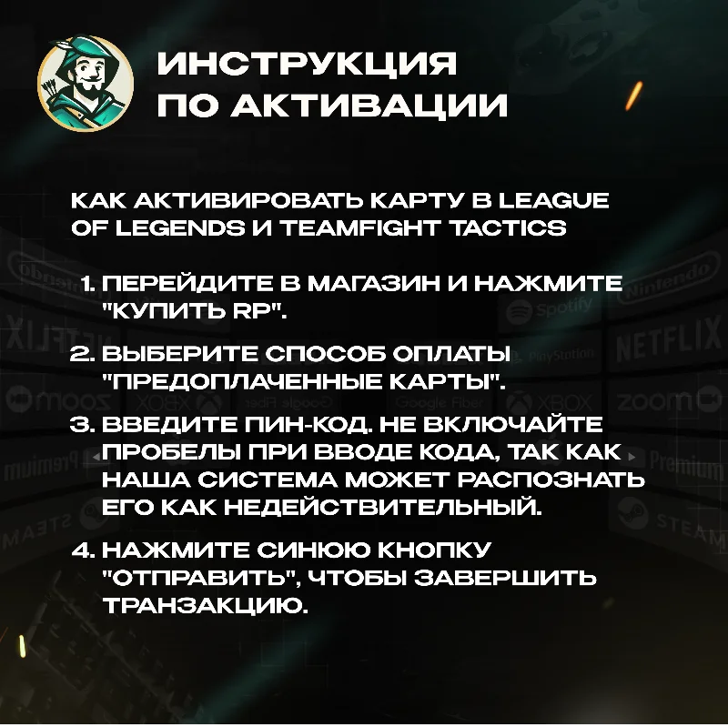 - Моментальная доставка. После оплаты вы попадете на страницу с уникальным кодом пополнения