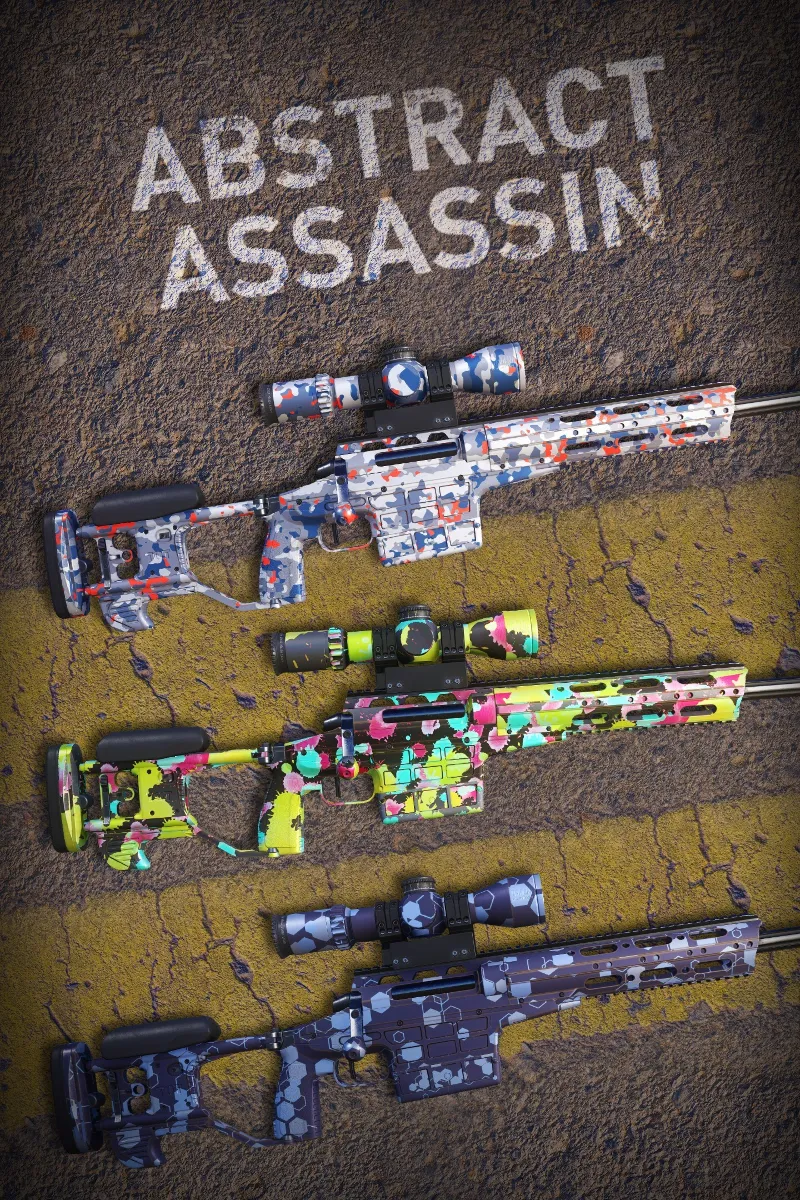 Пакет кожи оружия Abstract Assassin DLC предназначен для тех, кто хочет привлечь внимание… перед тем, как взорвать его. Содержащиеся три глаза-пopping кожи, включая Paint Spill, Round Geometrical Painted и Dark Hex Camo, почему бы не сливаться, когда вы можете выделиться?