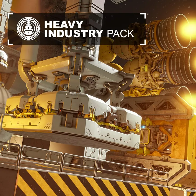 Набор «Heavy Industry» для Space Engineers включает в себя большую магнитную пластину, балочные блоки, промышленные конвейерные трубы, Крышка конвейерной трубы, цилиндрическую колонну, вертикальную кнопочную панель, новое оформление для большого водородного бака и большого контейнера, промышленный очиститель и сборщик, промышленные водородные ускорители, а также скин обшивки «Опасность».