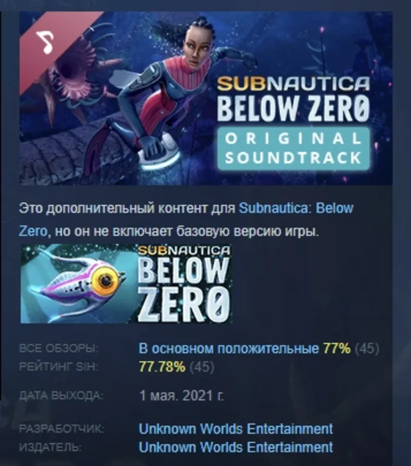 Dlc Subnautica: Below Zero Original Soundtrack STEAM РОССИЯ
