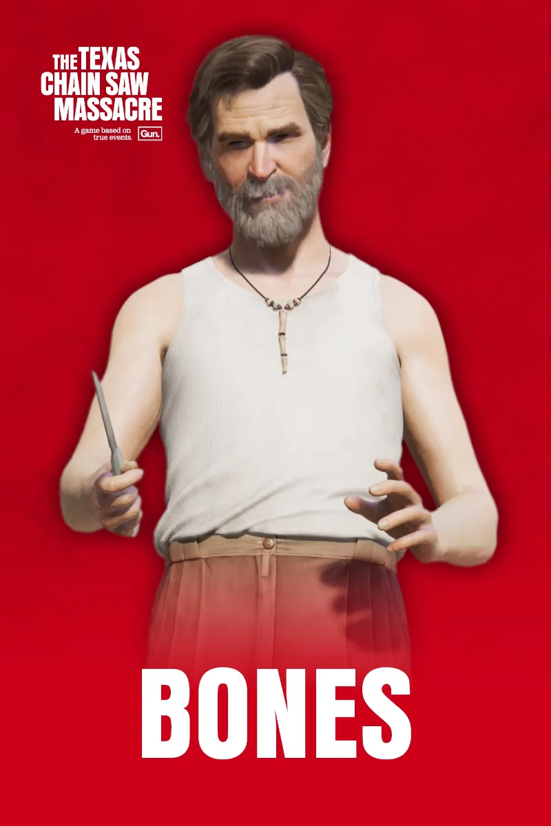 Этот двуличный псих, которого члены семьи Слотер с любовью прозвали «Кости», проводит свои дни, работая местным гробовщиком в округе Муэрто под одним из своих многочисленных псевдонимов. У Кости есть способность устанавливать кровавые бомбы на большинстве вертикальных поверхностей, и они взорвутся, если неосторожная Жертва пробежит в пределах досягаемости, нанося урон и раскрывая себя Семье. Не позволяйте его одежде и внешности обмануть вас, Кости любит хаос и так же смертоносен, как и он.