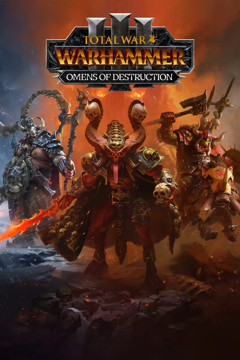Отправьтесь в кампании по убийству героев, наемническим конфликтам и жестоким тактикам в DLC **OMENS OF DESTRUCTION** для **Total War: WARHAMMER III**. Представляем трех легендарных лордов-разрушителей для **Khorne**, **Orcs & Goblins** и **Ogre Kingdoms**, а также множество новых боевых юнитов, геймплейных фич и целей, которые можно испытать в огромной кампании **Immortal Empires**.