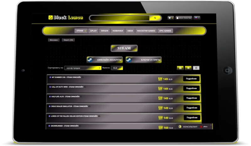 "Black Lemon" — Это индивидуальная CSS — Тема, созданная для каталога магазина Digiseller.