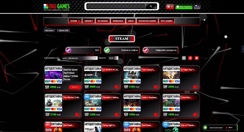 Скины DIGI GAMES CSS-Тема для каталога магазина Digiseller