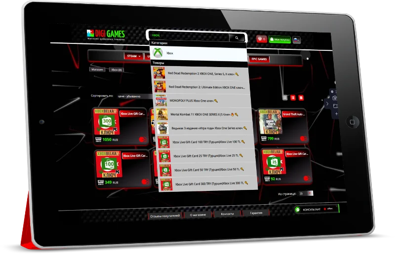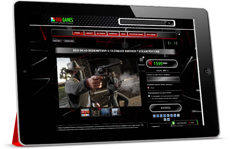 "DIGI GAMES" — Это эксклюзивная индивидуальная CSS — Тема, созданная для каталога магазина Digiseller и рассчитана для создания проектов под продажу цифровых, игровых ценностей, таких как: цифровые ключи, аккаунты различные пин-коды к популярным игровым платформам.