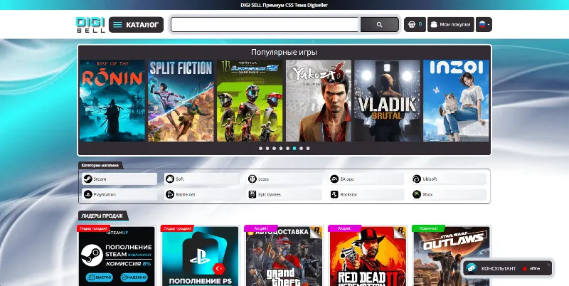 - Оживите облик своего магазина Digiseller, внедрив искусно разработанный плагин "DIGI SLIDER", предоставляющий бесчисленные опции кастомизации, чтобы вы могли придать вашему магазину нужный и неповторимый вид.