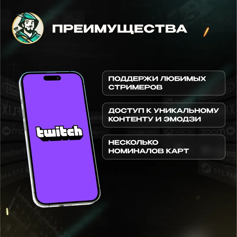 Подарочная карта Twitch — это предоплаченная карта, которую можно использовать для покупки подписок на каналы, битов (валюта для поддержки стримеров) и других товаров и услуг на платформе Twitch
