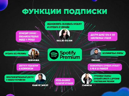 🔸 Качество звука. Пользователи Spotify Premium могут наслаждаться более высоким качеством звука (до 320 кбит/с).